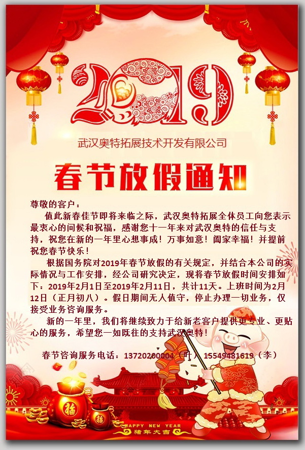 武漢奧特2019年春節(jié)放假通知!