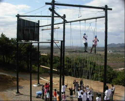 本套拓展器材從心理學(xué)角度入手,從天梯之間的距離、拓展器材總體高度等方面都做了非常嚴(yán)密的設(shè)計,使其更加符合人的心理規(guī)律;從拓展器材學(xué)角度來看,該拓展設(shè)備做了組合型設(shè)計,減少了占地面積;