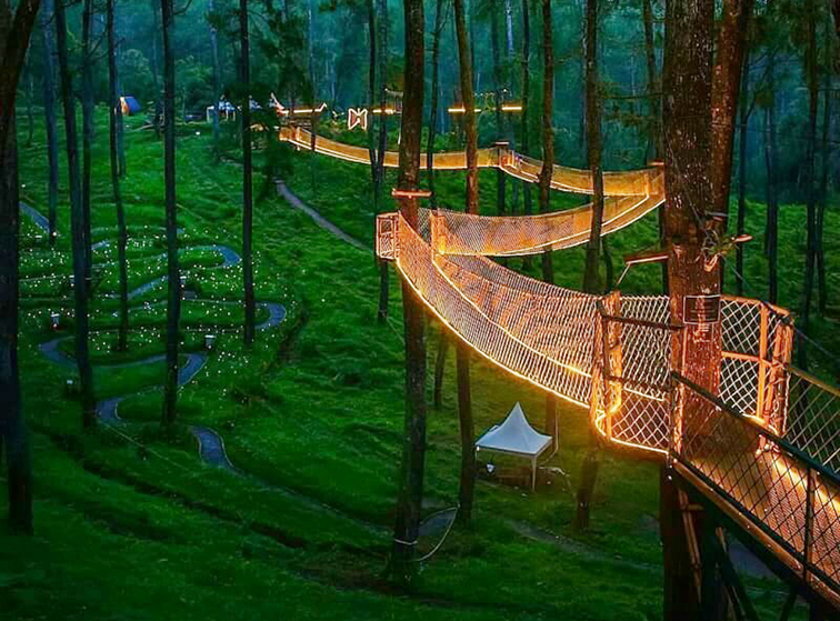 這是一款沉浸式森林主題室外拓展游樂(lè)設(shè)備,以天然林木為支撐,打造出蜿蜒穿梭于林間的高空網(wǎng)道與平臺(tái),搭配 LED 燈帶在夜間點(diǎn)亮,營(yíng)造出夢(mèng)幻的星芒森林氛圍。主體采用高強(qiáng)度鍍鋅鋼絲網(wǎng)與鋼材框架構(gòu)建,既保障了結(jié)構(gòu)穩(wěn)固與游玩安全,又最大程度保留了森林的自然風(fēng)貌。設(shè)備集高空行走、林間穿越、夜間打卡于一體,適用于自然景區(qū)、森林營(yíng)地、研學(xué)基地等場(chǎng)景,讓游客在離地的棧道上感受森林的靜謐與壯闊,同時(shí)鍛煉平衡感、勇氣與探索精神,是白天親近自然、夜晚邂逅星光的理想游樂(lè)選擇。