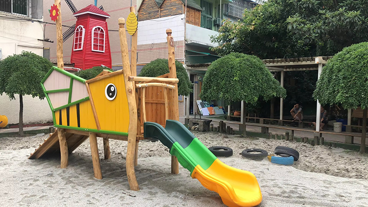 設備集攀爬、滑行、鉆行功能于一體:木質攀爬坡道可鍛煉孩子的肢體力量,黃綠漸變滑梯帶來順滑的滑行體驗,蜂巢造型的封閉空間則滿足孩子的探索欲與安全感。它采用環(huán)保耐候的原木與塑膠材質,全圓角設計保障游玩安全,適配幼兒園、社區(qū)小型綠地等場景,既能讓孩子在充滿自然童趣的場景中釋放活力,也能以萌趣的蜜蜂造型成為場地的童趣亮點。