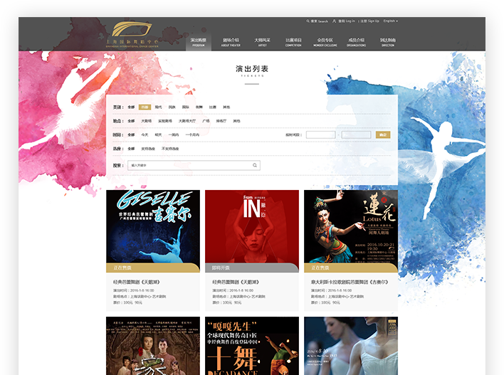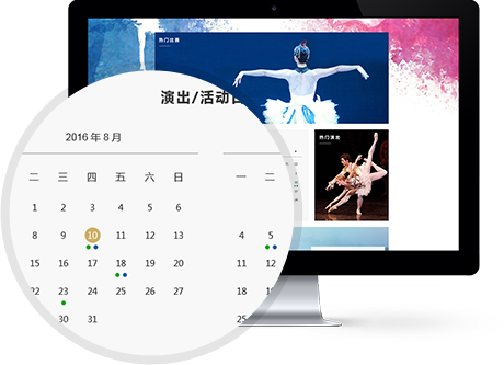 瀏覽者在瀏覽網站的第一時間,可通過日歷查詢、最新演出、演出推薦、演出類別等快速通過,第一時間了解掌握最新演出信息及活動資訊。