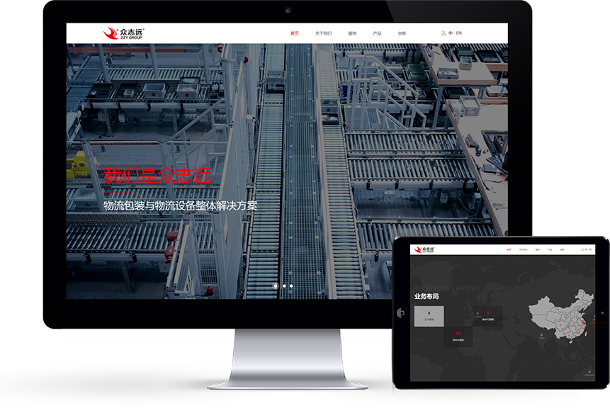 打破傳統物流制造行業刻板、拘謹的形象,邁若為眾志遠定制設計全新官方網站。以整屏瀏覽方式,將業務服務、服務系列、產品介紹、產品理念等板塊,以清晰,易讀的方式展現在瀏覽者面前