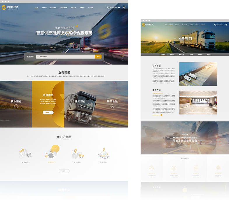 網站主體色調匹配公司行業特性,頁面的動態切換展示效果,展現了其“供應鏈+金融+科技”的理念。