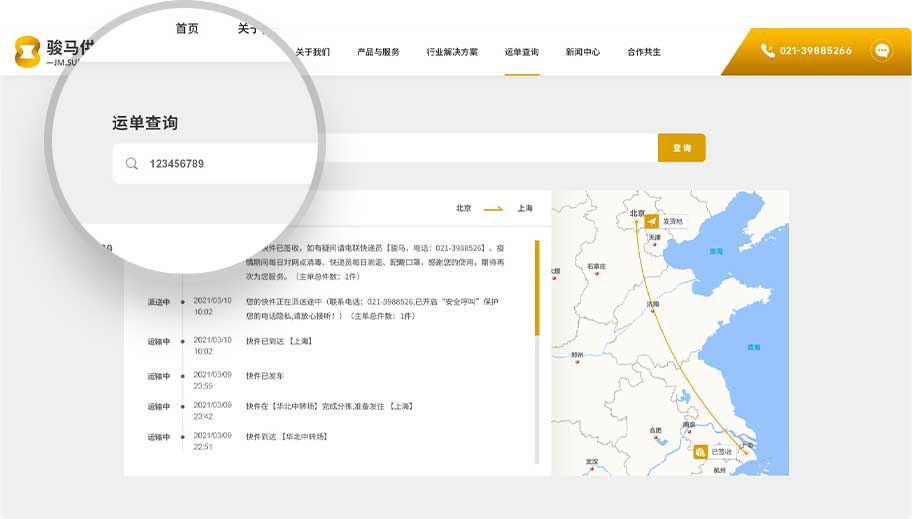 網站加入了在線查詢運單功能,通過運單號來跟蹤物流信息,信息每一步可實時進行更新,形成標準、高效、規模化的物流產品,打造全國性的綜合物流網絡服務體系。