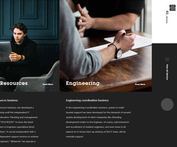 B-engineer是一家工程公司,以“我們將繼續以復雜的企業發展與社會適應為目的”為口號,網站的