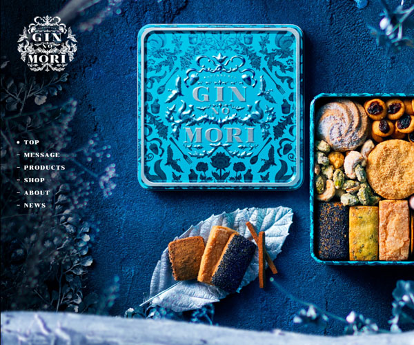 Ginnomori是一家制作堅(jiān)果、黃油類餅干的公司,網(wǎng)站“冰晶森林”大圖一貫到底,皇家標(biāo)志的logo無(wú)不
