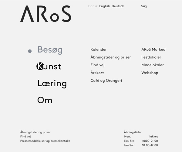 Aros是家藝術博物館,網站頁面色彩交錯的icon,簡潔便捷的項目展覽,帶給參觀者更好的視覺體驗和享受,這也是公司的企業愿景