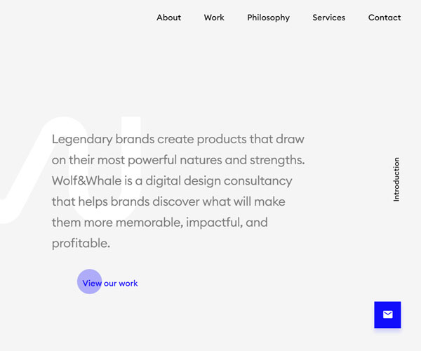 Wolfwhale是一家設(shè)計咨詢公司,網(wǎng)站通過藍色的主色調(diào)和多樣化的字體以及精細