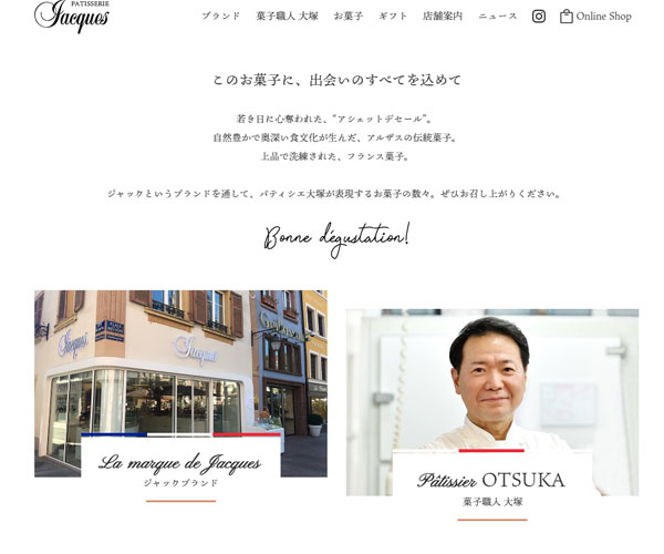 Jacques是一家制作蛋糕點心的店面,網站整體風格較為簡潔明了,嚴謹的圖文排版與