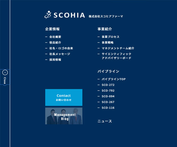 Scohia在心血管、代謝、腎臟方面有著高專注度的生物企業(yè),網(wǎng)站以不同的藍色基調(diào),
