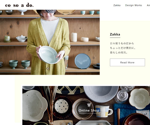 Cosoado制作不同的瓷器碗具,網站的整體建設風格較為簡潔,以嚴謹的圖文排版與簡單的