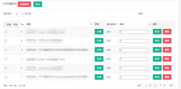 使用 jQuery Datatable 通過 Ajax 從后臺獲取的數據來構造數據列表,可以增加或者隱藏相應的列,已達到數據顯示的要求。同時,插件提供了排序,分頁,搜索等常用的功能。支持不同框架和主題 jquery UI 和 Bootstrap 等。
