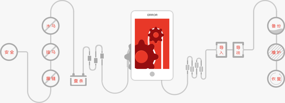 數據庫導入導出、數據庫備份、數據后臺維護、網站緊急恢復 、故障恢復、查殺、清理木馬后門、清理掛馬、防止黑鏈、安全防護。